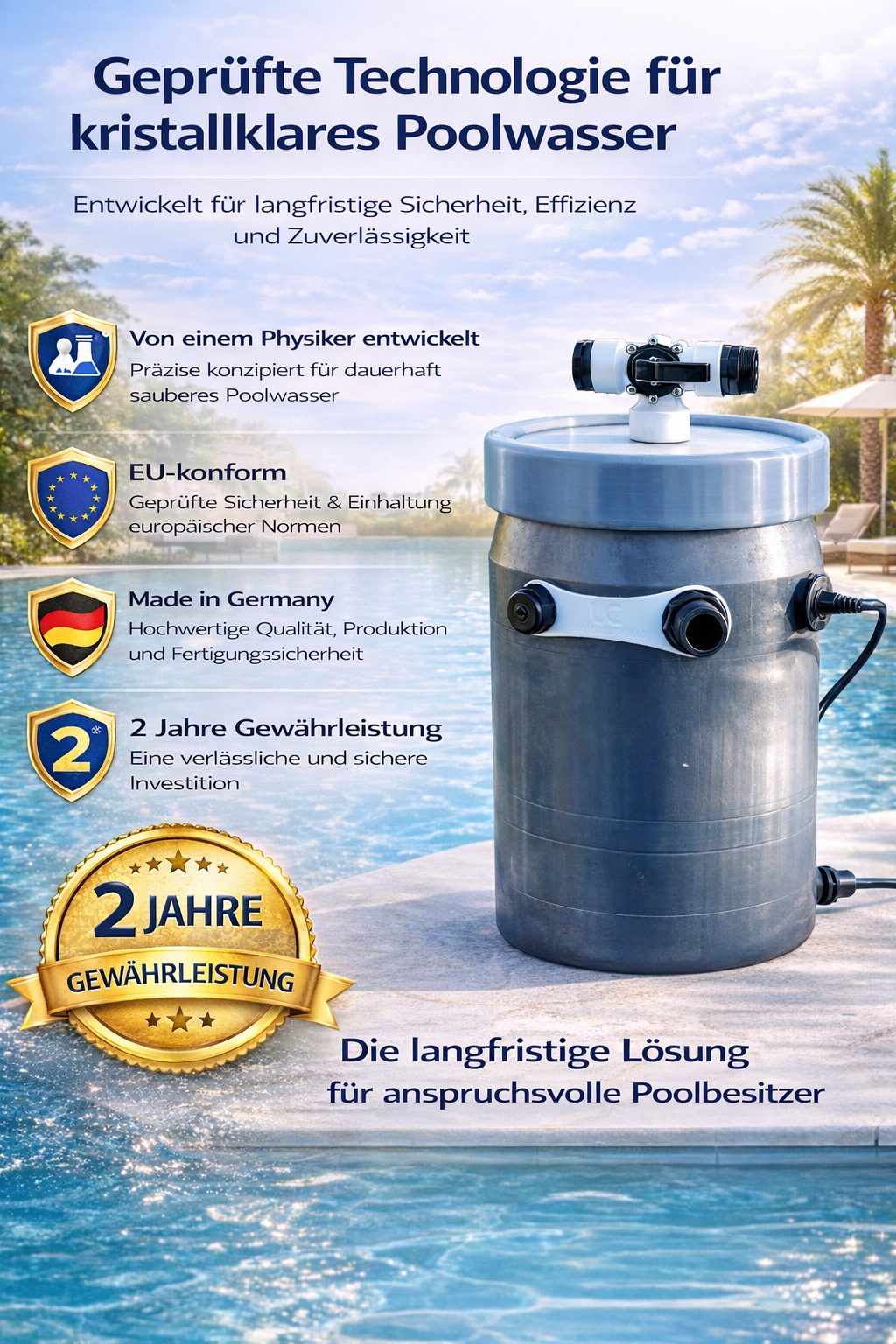 Genießen Sie dauerhaft kristallklares, hygienisch sauberes Wasser – mit minimalem Wartungsaufwand und maximaler Energieeffizienz.